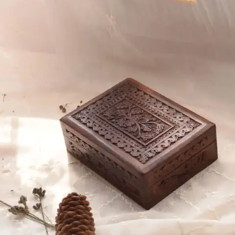 Hand Crafted from rose wood, this box adds a touch of charm while offering a simple and elegant storage solution for any living space.