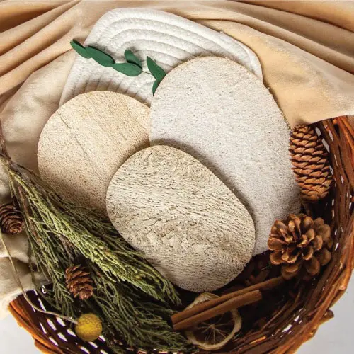 A natural, gently textured accessory crafted for a calm, refreshing guest experience. Made from dried vegetable fiber, it offers a clean, organic feel against the skin. Size and shape can be customised to suit hotel preferences, allowing it to blend smoothly into different room styles. Each loofah comes in understated, eco conscious packaging that reflects modern hospitality values. Custom branding is available for a cohesive amenity presentation.